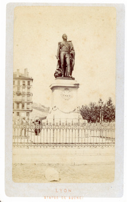 A carte-de-visite of the July Column (or Colonne de Juillet), a large Corinthian-style column that was built on the site of the Bastille prison to commemorate the 1830 Revolution. While a monument was originally planned to be built in 1793 to commemorate the Fall of the Bastille and the beginning of the 1789 French Revolution, nothing was built until King Louis-Phillipe commissioned this column which was finished in 1840. Designed by Jean Antoine Alavoine and Joseph Luis Duc, the column stands at 169 feet and is topped with an angel called the Spirit of Freedom. The vaults underneath contain the remains of rioters killed in both the Revolution of 1830, which brought King Louis-Phillipe to power, and the 1848 Revolution that overthrew him.