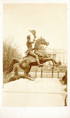 This carte-de-visite photograph depicts the Equestrian Statue of Marcus Aurelius. The Classical statue was created to honor the Roman Emperor Marcus Aurelius for his triumph in the Marcomannic Wars in c. 175 – 176 C.E. It was moved into the Capitoline Museum in 1981 and replaced by a replica due to corrosion.