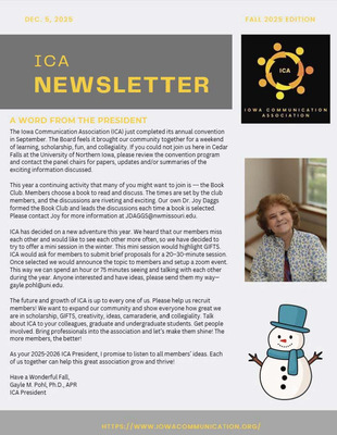 The ICA Newsletter is an biannual newsletter published by the Iowa Communication Association.