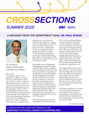CrossSections is an annual newsletter published by the University of Northern Iowa Department of Physics.