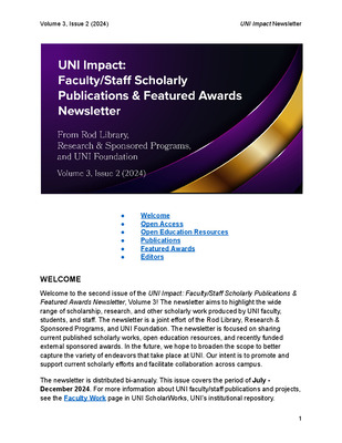 UNI Impact: Faculty/Staff Scholarly Publications and Featured Awards Newsletter, v3i2, 2024