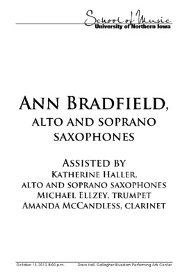 Ann Bradfield, Alto and Soprano Saxophones, October 15, 2013 [program]