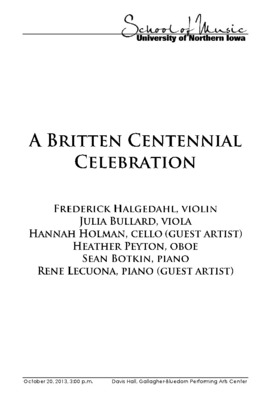 A Britten Centennial Celebration, October 20, 2013 [program]