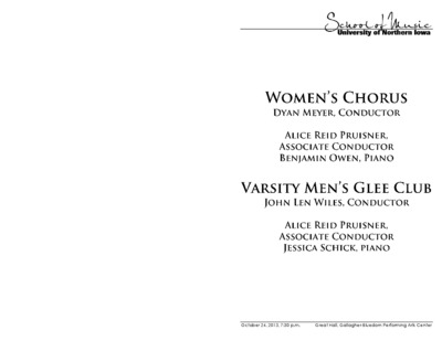 Women's Chorus, Varsity Men's Glee Club, October 24, 2013 [program]