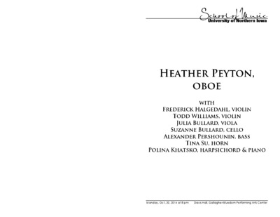 Heather Peyton, Oboe, October 20, 2014 [program]