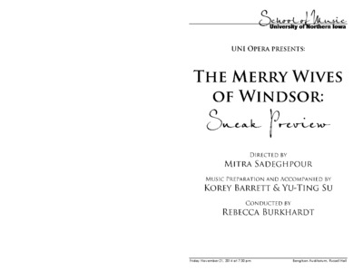 The Merry Wives of Windsor, a Sneak Preview, November 21, 2014 [program]