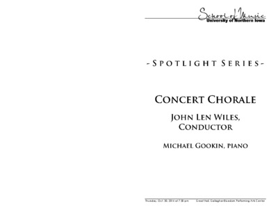 Program of a music recital given by faculty, students, or guest artists from the School of Music at the University of Northern Iowa.