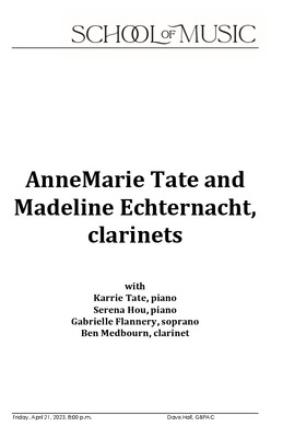 AnneMarie Tate and Madeline Echternacht, clarinets, April 21, 2023 [program]
