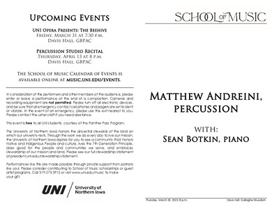 Matthew Andreini, Percussion, March 30, 2023 [program]