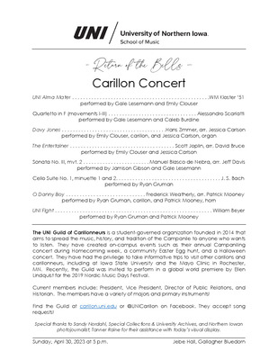 Return of the Bells Carillon Concert, April 30, 2023 [program]