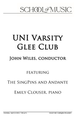 UNI Varsity Glee Club, John Wiles, Conductor, April 24, 2023 [program]