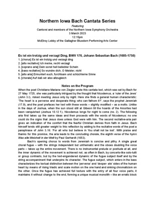 Northern Iowa Bach Cantata Series Featuring Cantorei and members of the Northern Iowa Symphony Orchestra, March 3, 2023 [program]
